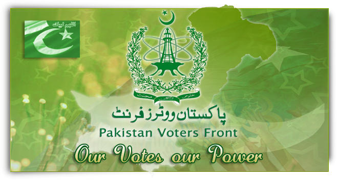پاکستان ووٹرز فرنٹ پاکستان کے نو کروڑ سترلاکھ ووٹروں سے اپیل کرتا ہے کہ وہ اپنے اپنے قومی اسمبلی کے خلقوں کی سطح پر اپنے علاقوں میں موجود ایماندار، پڑھے لکھے اور باصلاحیت افراد کےکاغذات نامزدگی برائے امیدواران قومی و صوبائی اسمبلی متعلقہ دفتر الیکشن کمیشن میں ۱۱۔جون ۲۱۰۸ تک جمع کر ادیں ۔تا کہ کا غذاتِ نامزدگی کی منظوری حاصل کرنے والے امیدواروں کے متعلق معلومات اکٹھی کر کے ان میں سے بہرتین افراد کو چن کر عوامی انتخابی پروگرام کے تحت آئندہ انتخابات میں کامیاب کروایا جا سکے۔
